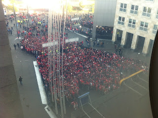 Afortunadamente, conseguimos chegar a horas de entrar num dos quatro autocarros que nos iriam levar para o palco da final. Foi a partir deste momento que vivenciei os episódios mais marcantes desta viagem. Vou tentar traduzir por palavras.